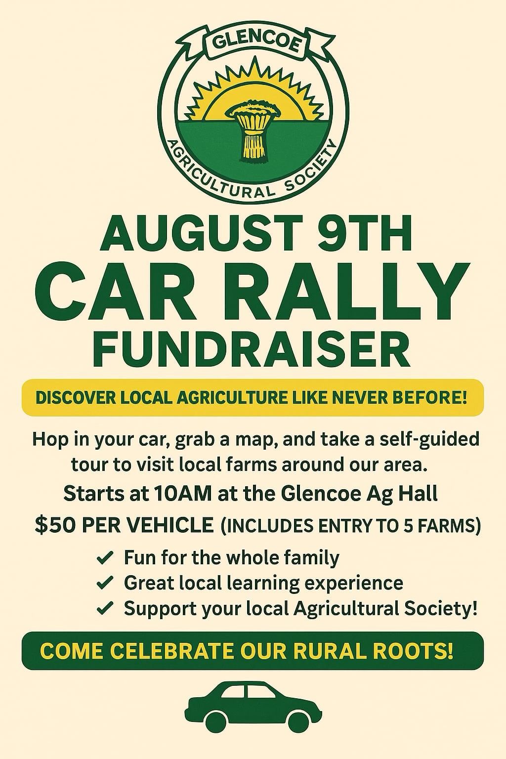 Join the Glencoe Agricultural Society, the fourth Tuesday of each month, 8pm at the Glencoe Ag Hall. Come out and get involved. Contact secretary to be added to email distribution list to receive meeting notices.